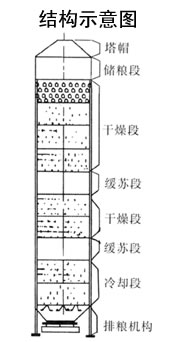 主塔結(jié)構(gòu):由儲(chǔ)糧段、干燥段、緩蘇段、干燥段、緩蘇 段、 冷卻段、排糧機(jī)構(gòu)組成。